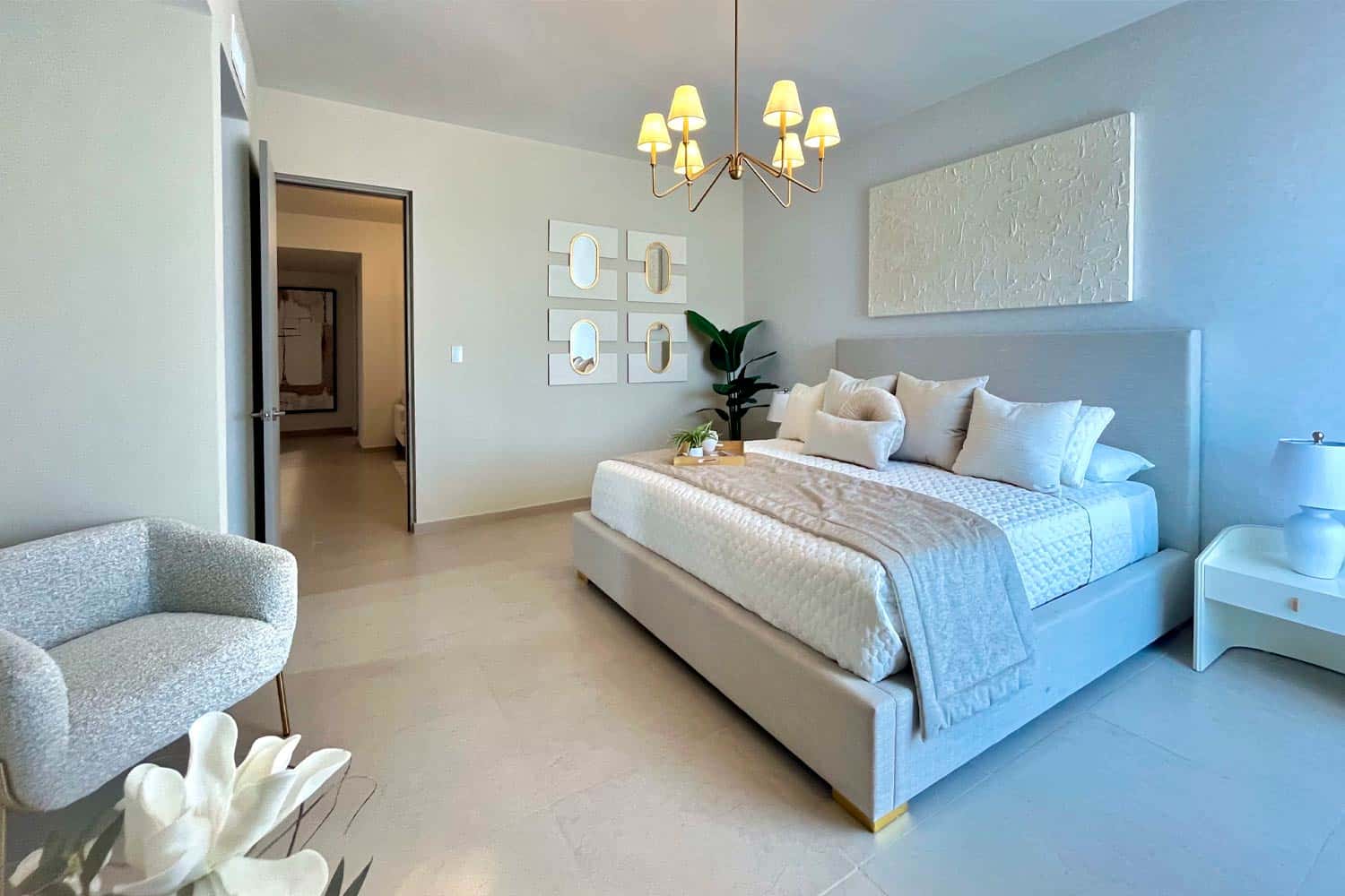 • Recámara principal (con baño completo, clóset, vestidor y tocador independiente)